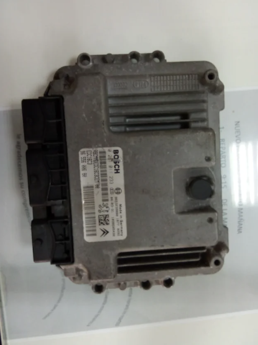 Centralita Bosch compatible con vehículos Peugeot y Citroën, en buen estado de funcionamiento. Unidad de control del motor revisada, totalmente operativa y sin manipulaciones ni reparaciones previas.